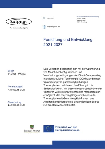 Ziel ist die Weiterentwicklung der Direct Compounding Injection Moulding (DCIM)-Technologie, bei der Compoundierung und Spritzguss in einem Prozessschritt verbunden werden. Dadurch können Gummirezyklate und Reifencordfasern direkt in Thermoplaste eingebracht und zu hochwertigen Produkten verarbeitet werden.