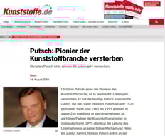 Christian Putsch verstirbt mit 83 Jahren. Das Fachmagazin "Kunststoffe" würdigt ihn in einem Nachruf als Pionier der Kunststoffbranche.